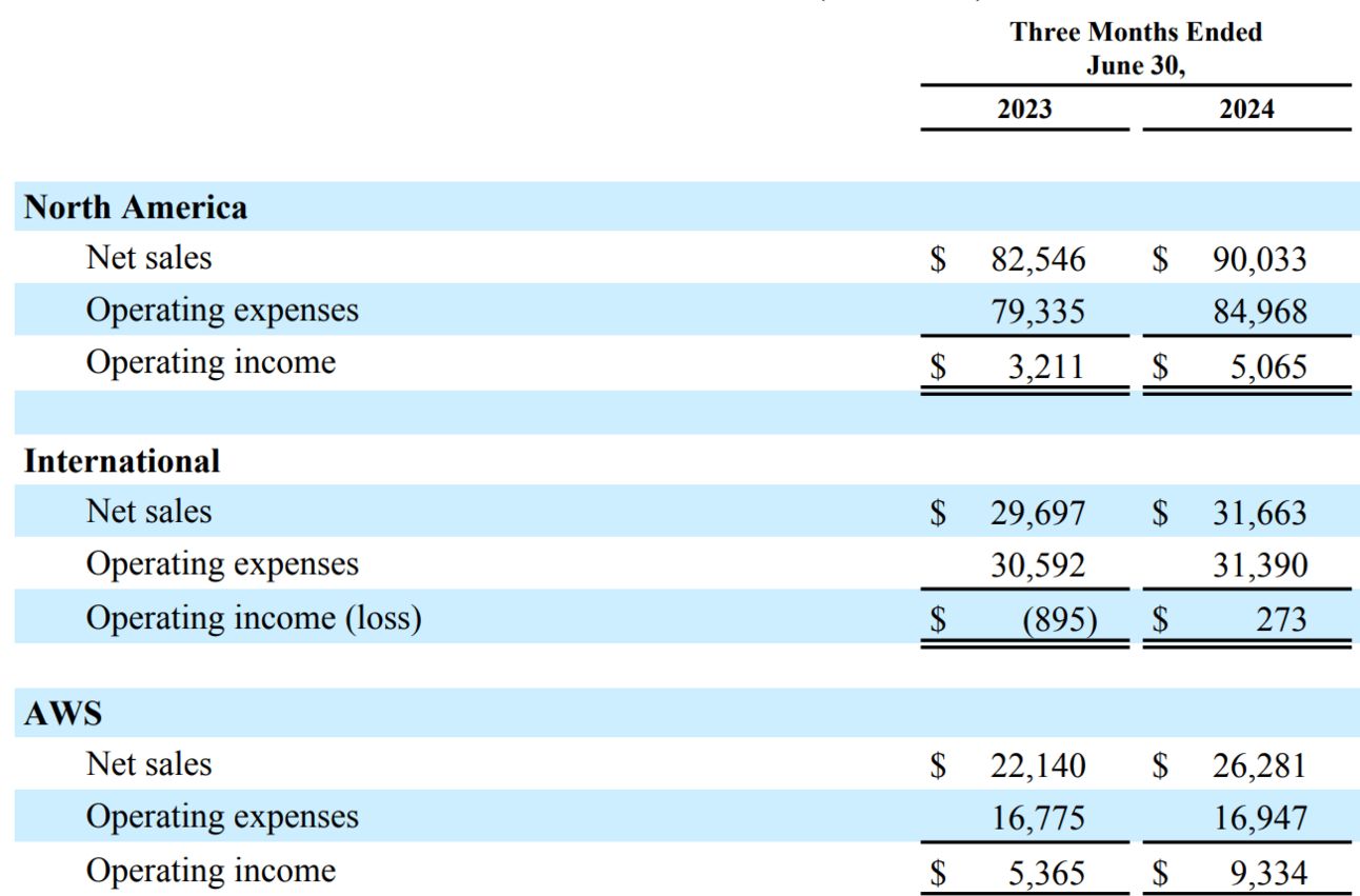 North America and AWS led in operating income growth, as AWS led in revenue: |