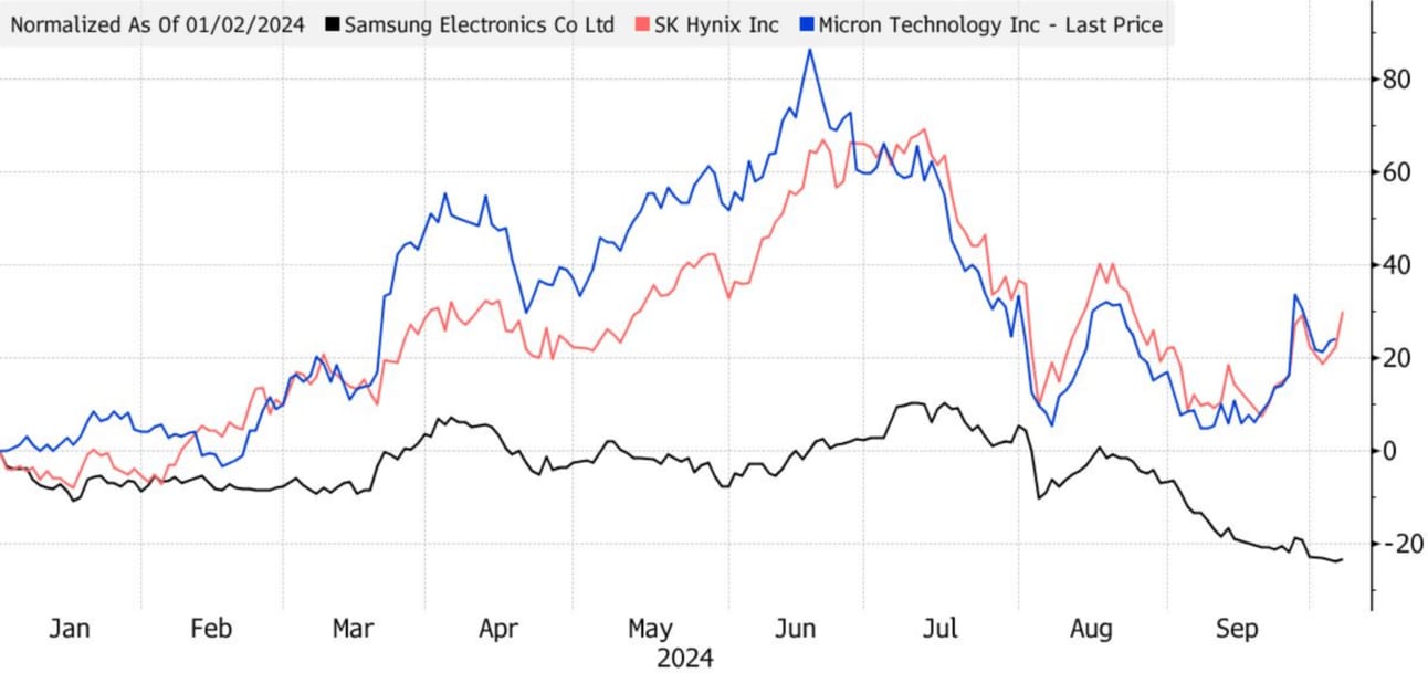 Samsung currently lags in the high-bandwidth memory market meant for AI, with their stock underperforming YTD |
