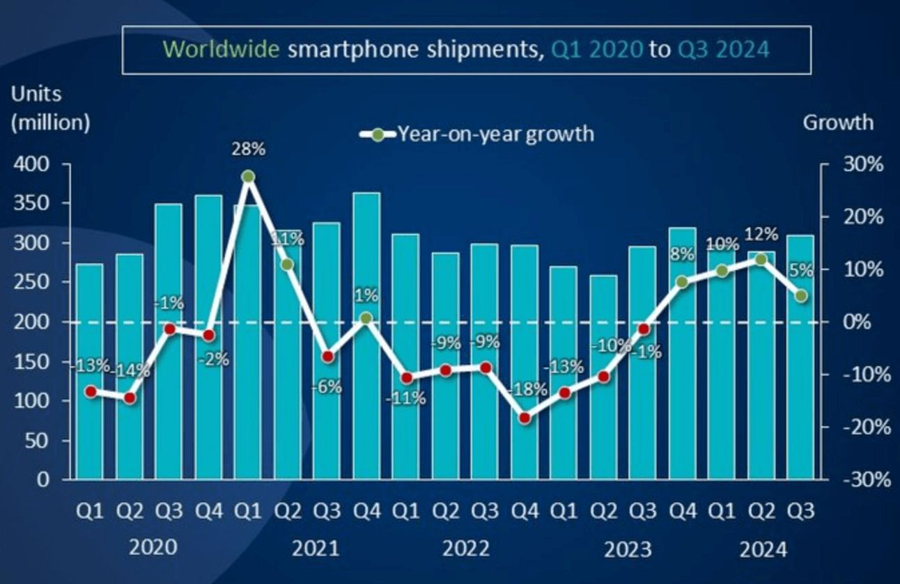- Global smartphone market +5%, with Apple reaching record high
