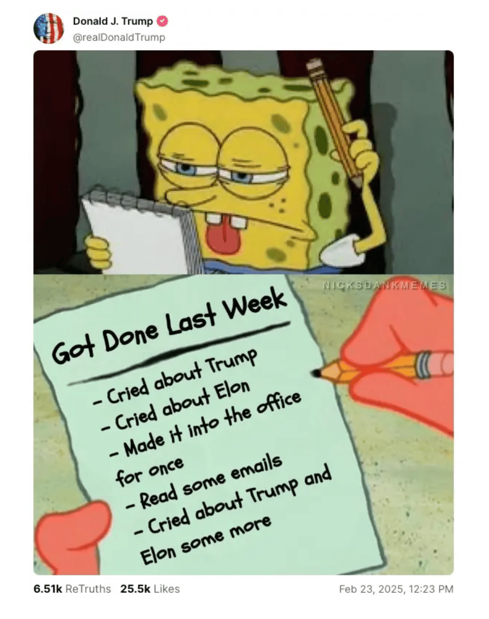 Trump posts SpongeBob meme to poke fun at outrage over Musk's email