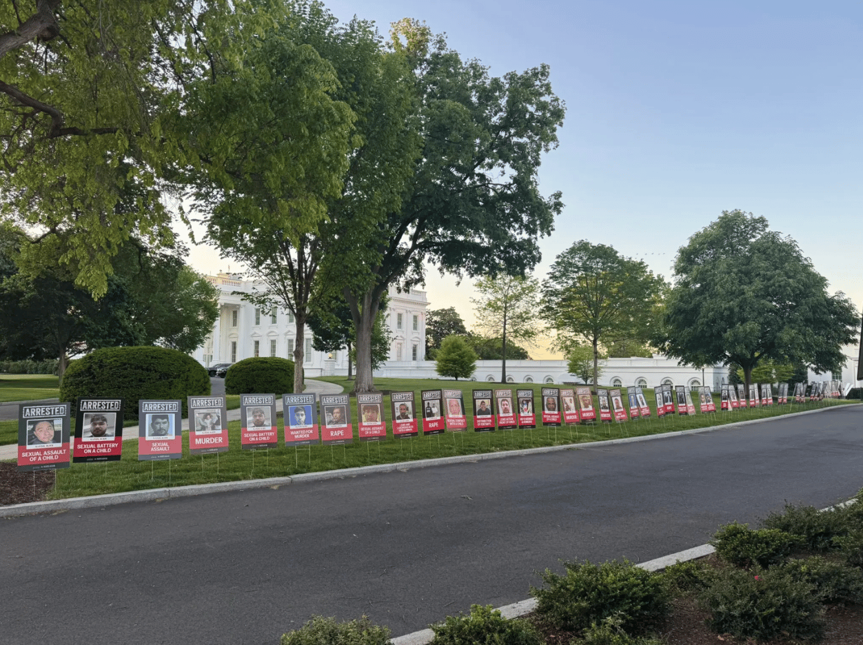 White House lawn lined with illegal immigrants' mugshots showcasing ICE busts in Trump's first 100 days . . . The White House lawn has been lined with mugshot-style posters bearing the faces of 100 "arrested" illegal migrants — and lists of the despicable crimes some have committed. The placards, emblazoned with "ARRESTED," could be seen lined up along the White House driveway first thing Monday to showcase some of the worst offenders nabbed by Immigration and Customs Enforcement in President Trump's first 100 days, a White House official told The Post. New York Post