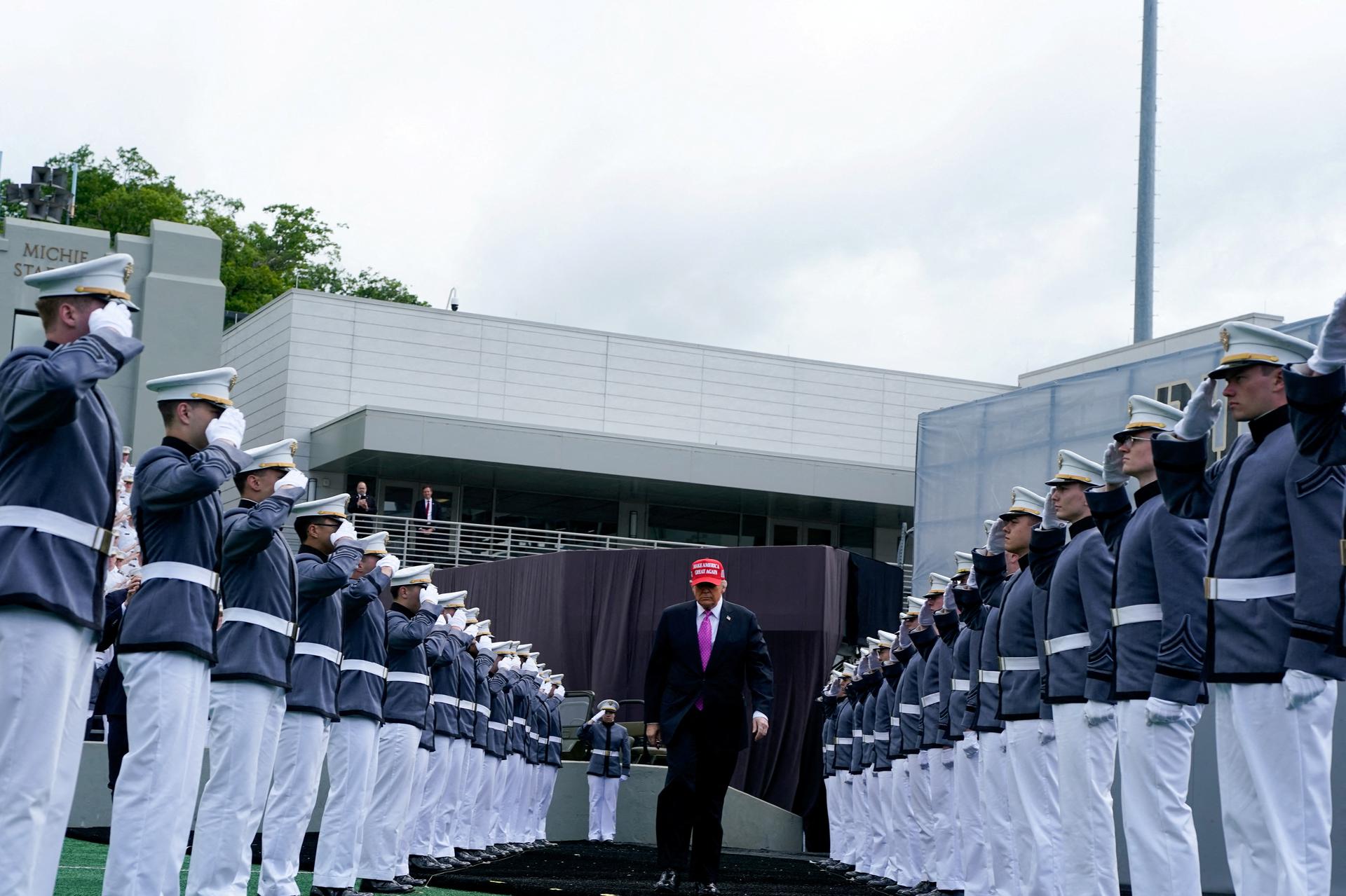 U.S. President Donald Trump attends the commencement ceremony at West Point Military Academy in West Point, New York, U.S., May 24, 2025. REUTERS/Nathan Howard |