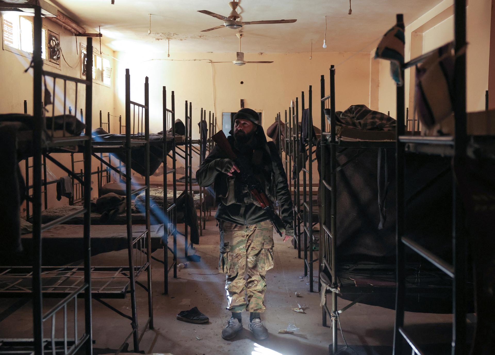 A member of the Syrian security forces walks near beds at one of the empty cells of Homs prison in Syria, December 21, 2024. REUTERS/Amr Alfiky/File Photo |