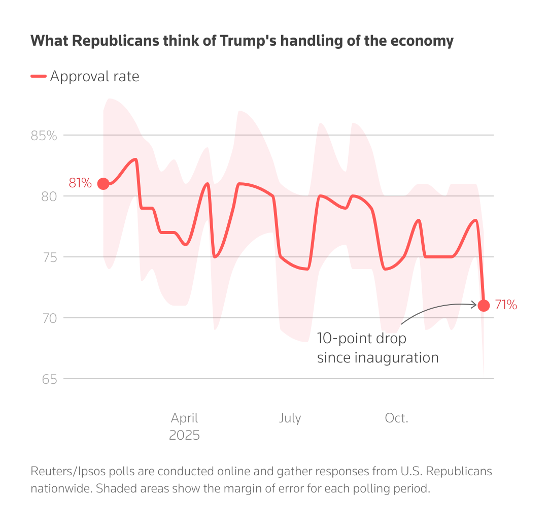 Flanked by two decorated trees and backed by green garland, Trump's tableau-like setting in the White House Diplomatic Reception Room on Wednesday night was fit for a holiday message. He delivered one, but it was low on Christmas cheer. The president sped through his address, seemingly trying to cram a 90-minute rally speech into 18-minute remarks. The were essentially the same: Trump blames Democratic former President Joe Biden for inflation and pretty much anything else that he thinks is hobbling the country. The political challenge for the Republican president, of course, is that those problems are now his. Trump has presided over the economy for almost a year. Biden's attempt to tell people in 2024 that conditions were better than they perceived backfired, and the same tactic seems to be backfiring on Trump. A Reuters/Ipsos poll this week found only 33% of U.S. adults approve of how Trump, whose tariffs have stocked U.S. Treasury coffers but created uncertainty for consumers, has handled the economy. |